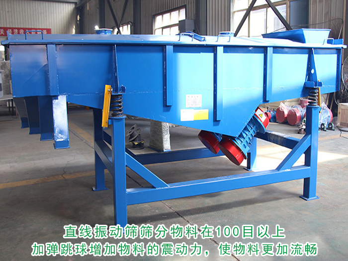 2、直線振動(dòng)篩篩分物料在100目以上的,物料流動(dòng)性較小的物料,是需求加彈跳球增加物料的震動(dòng)力,使物料順暢的篩分下來(lái)。