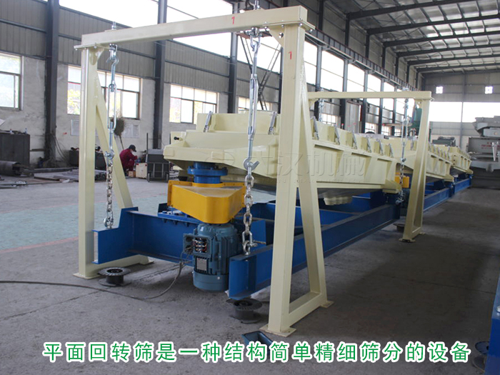 平面回轉(zhuǎn)篩是一種精細篩,該設備結(jié)構(gòu)簡單,主要有以下部分組成,即篩架、篩箱、減震裝置、驅(qū)動裝置的部件組成,運作時性能穩(wěn)定,
