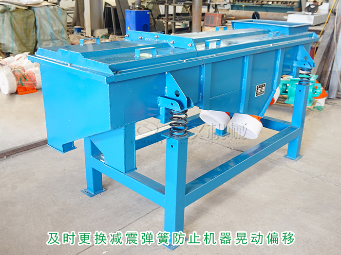若是直線振動篩的整機出現了來回晃動側移的情況,大漢振動篩小編告訴你這種情況一般都是篩機上安裝的減震彈簧損壞或者變形造成的后果,及時更換減震彈簧即可