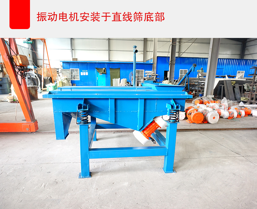 當然,也可以通過減少直線篩的篩框等整體寬度來解決這個問題,但這樣會造成設(shè)備的有效篩分面積減少,導(dǎo)致處理量變小,影響篩分效率、生產(chǎn)進度,所以可以選擇將振動電機安裝在設(shè)備的底部,以此來減少直線篩的整體寬度,這樣即保證了設(shè)備的有效篩分面積,不影響處理量和篩分效率,也大大減小了直線篩設(shè)備的整體寬度。