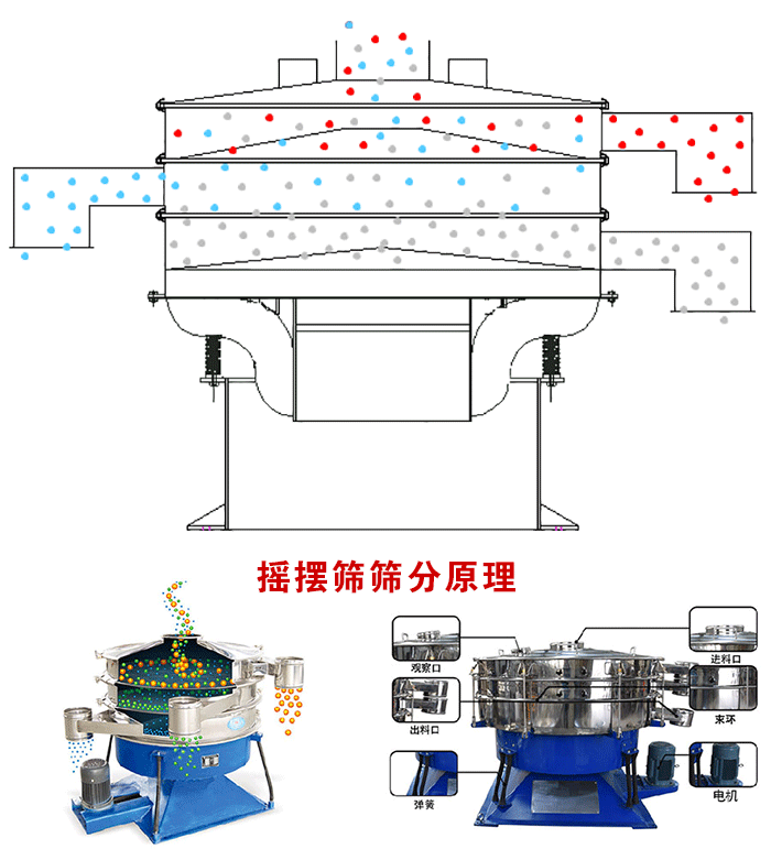 搖擺篩是輕微的橢圓搖擺運(yùn)動,不存在高速振動,對物料影響很小,不會破壞物料形狀,大大提高了物料的成品率。