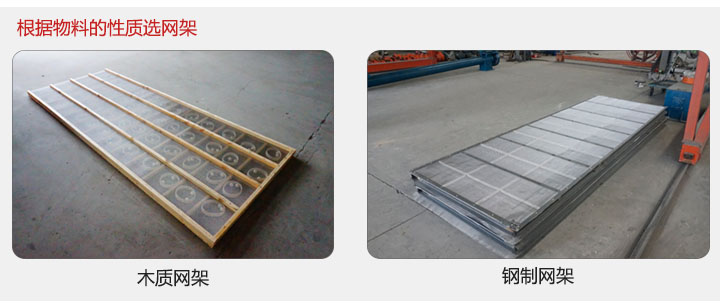 3,該產(chǎn)品可更換多種網(wǎng)架,木質(zhì)網(wǎng)架,鋼制網(wǎng)架等根據(jù)物料的性質(zhì)進行選擇。