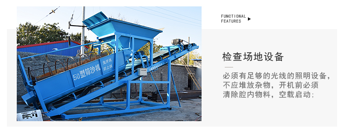 4.儲料斗容量大,使裝載機合理安排主設(shè)備(如攪拌站)與篩砂機的上料時間,避免裝載機在不同上料點 及原料間頻繁換位,使裝載機輕松上料,降低勞動強度。